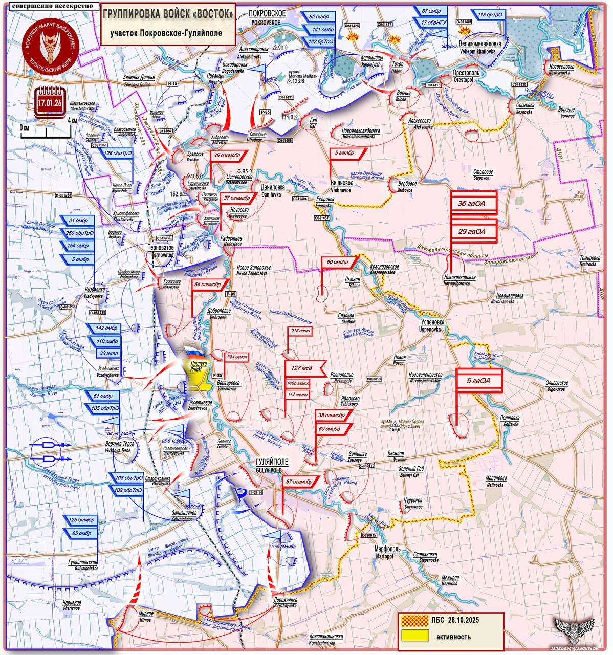 ВС РФ сформирована непрерывная зона контроля от южных окраин н.п. Терноватое до города Гуляйполе Короткая сводка с фронта 17 января 2026 года