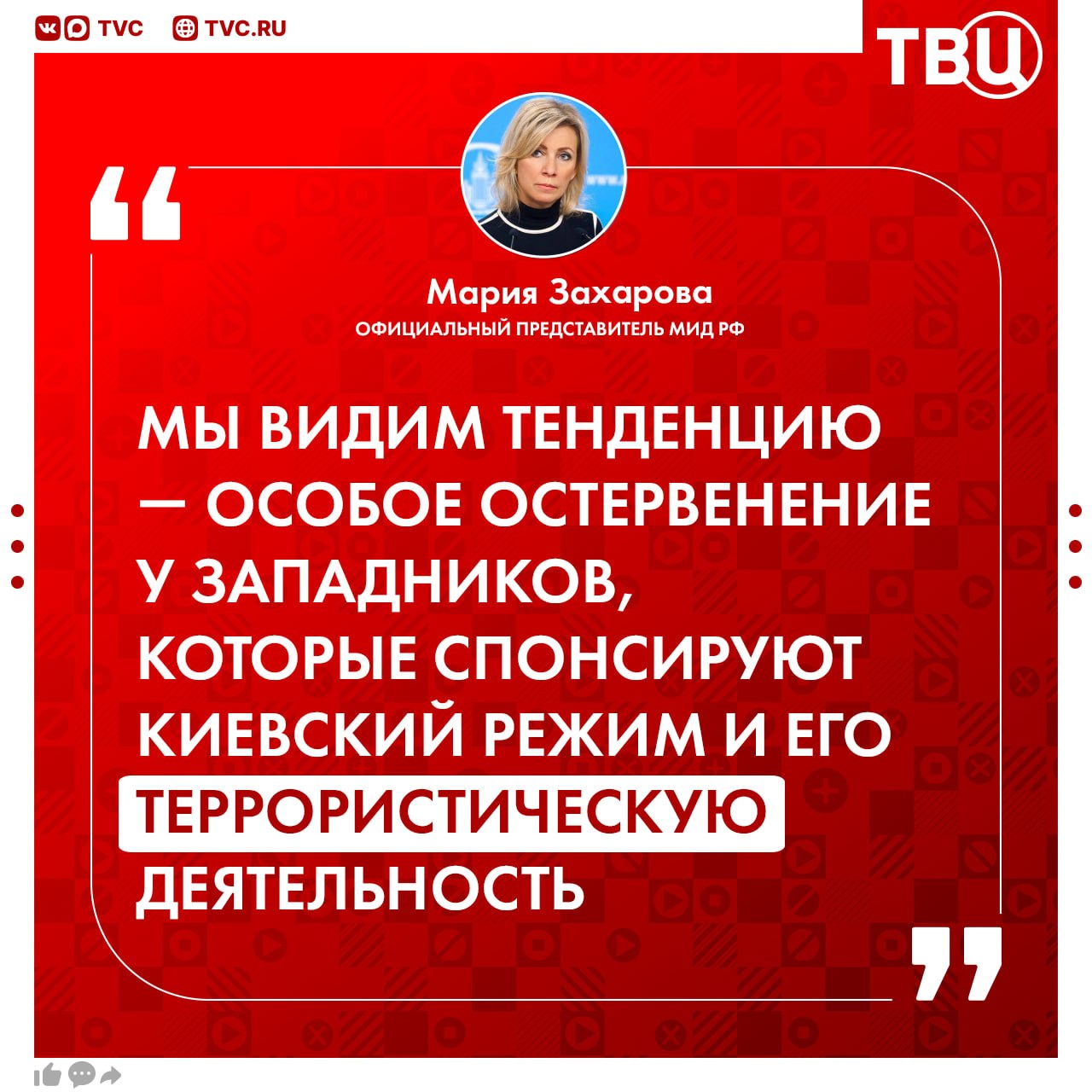 Официальный представитель МИД РФ, комментируя повреждение ВСУ обелиска-символа Севастополя, отметила, что это уже тенденция.