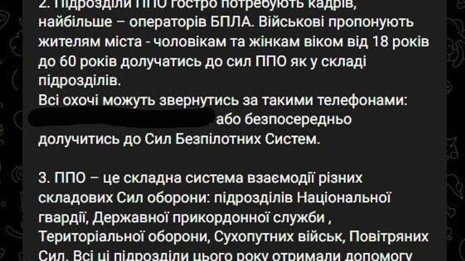 Глава местной администрации признал, что желающих управлять дронами в рядах ПВО почти не осталось. Мужчин и женщин от 18 лет теперь официально призывают закрывать брешь в численности местных дронщиков.Ну да, а потом местных...
