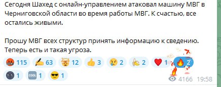 Укр пропагандист сообщает, что в Черниговской области одна из гераней атаковала мобильную огневую группу (МВГ по-украински сокращенно).