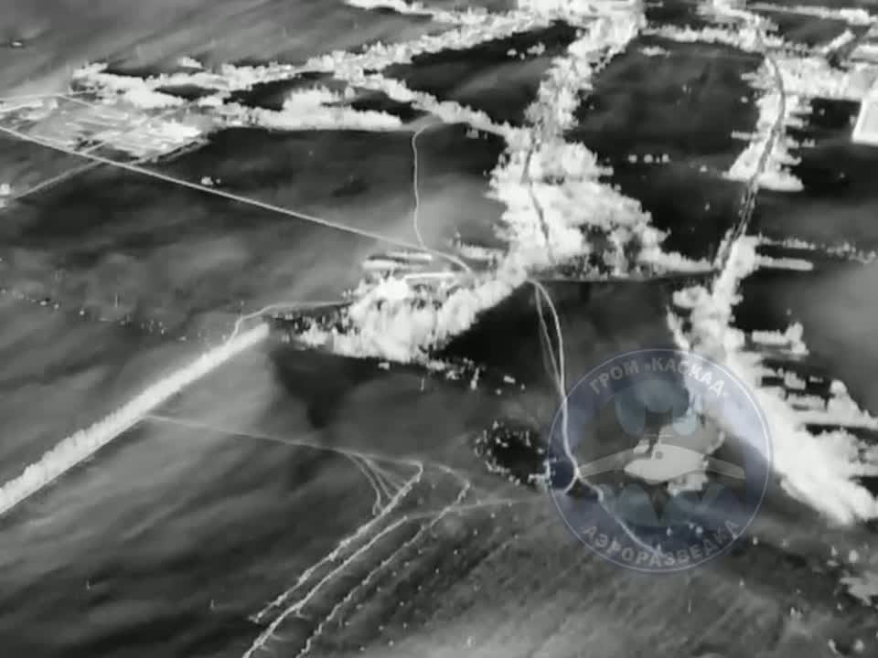 Объективный контроль удара баллистической ракеты ОТРК «Искандер» по месту подготовки и запуска украинских дальнобойных БПЛА возле села Жадово в приграничье Черниговской области, расстояние до границы не менее 21 км